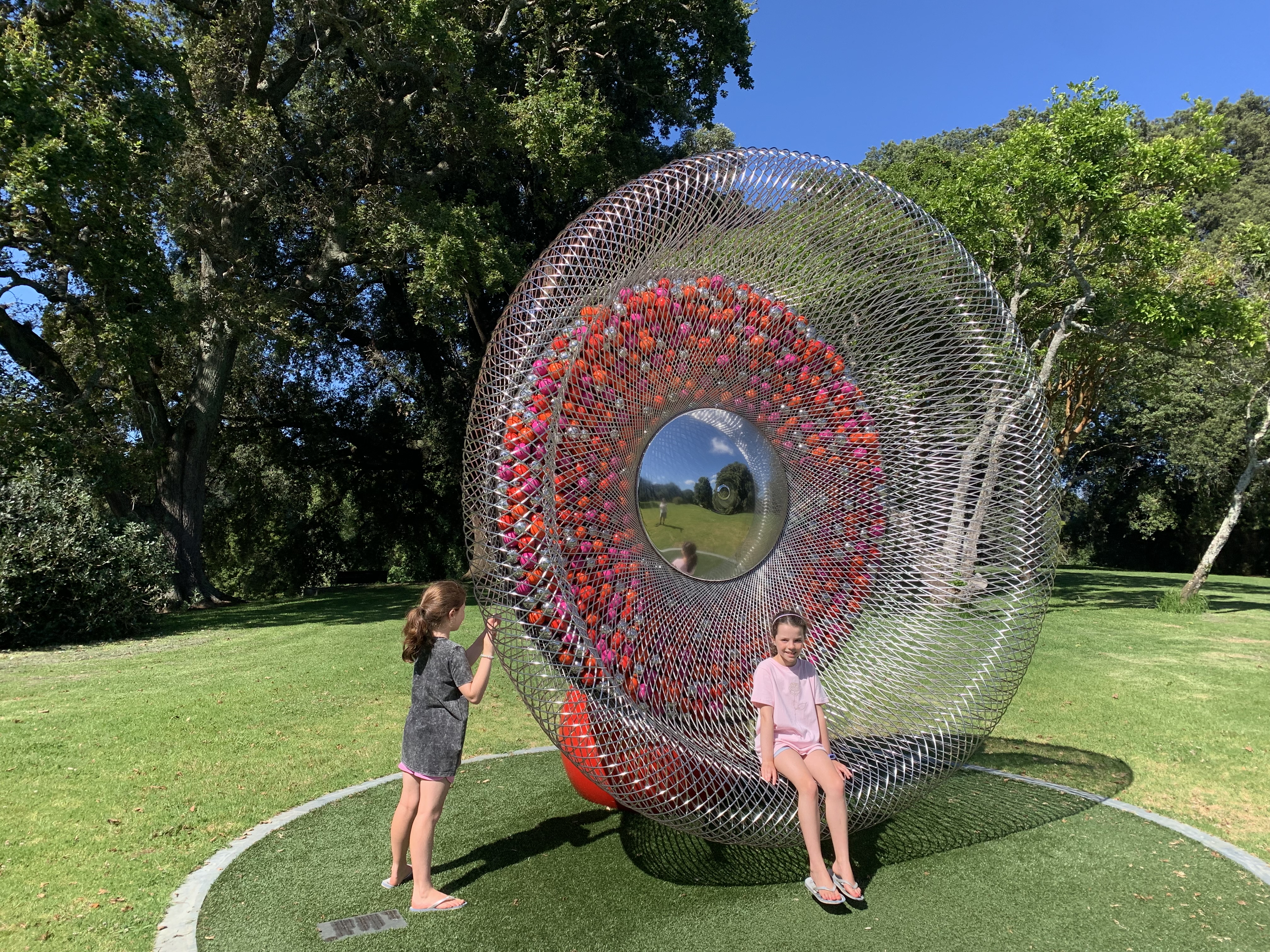 The best option for parking is The Arts House Trust, Pah Homestead which has ample, free parking. The carpark entrance is via Delargey Ave, off Hillsborough Road. It is a 7-minute walk through the park to the location of 1001 Spheres.