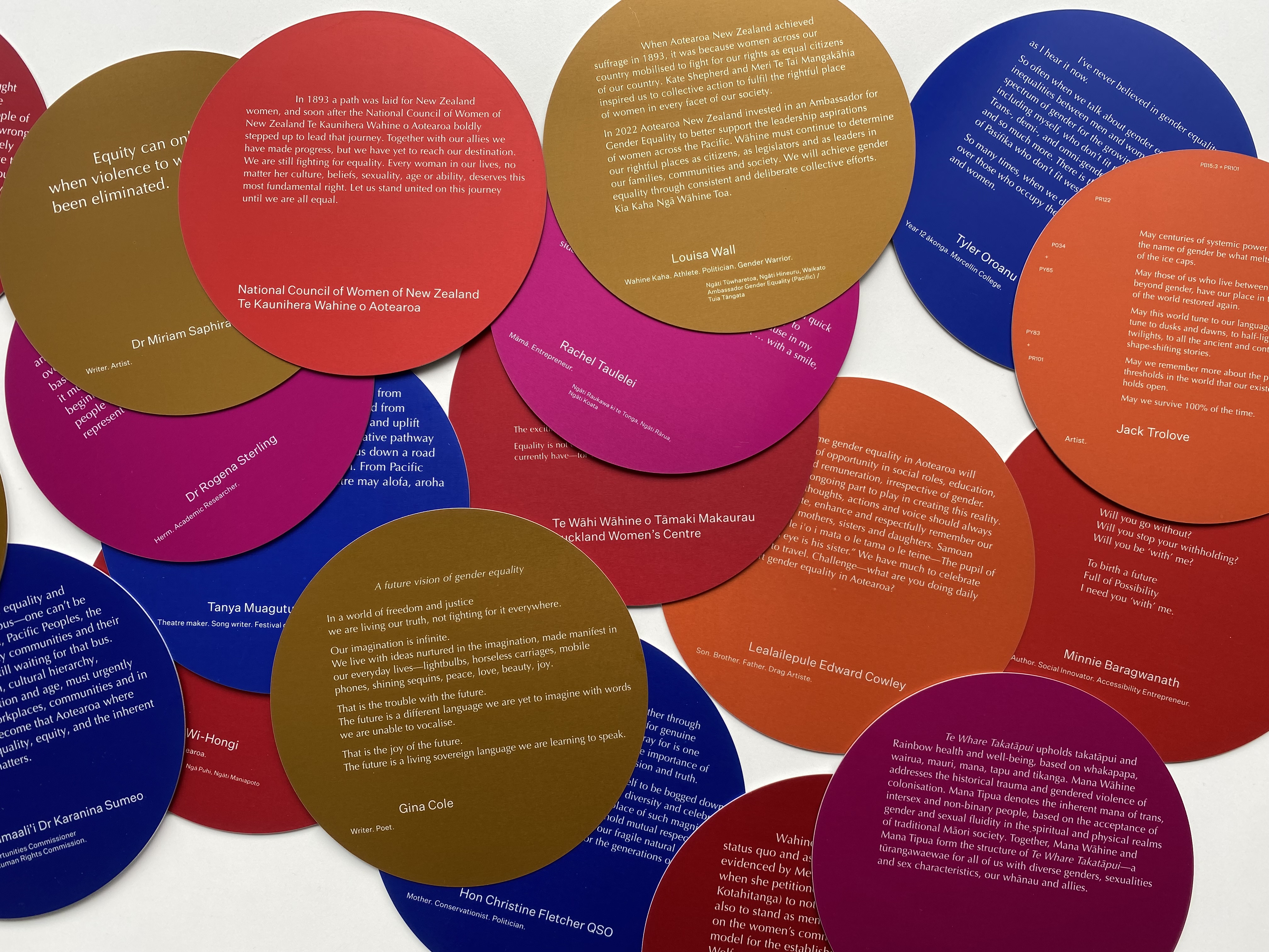 In total, 23 individuals and organisations, representing a diversity of ideas and approaches, contributed written words to the project. Their words are hopes, visions, poems, demands, manifestos, calls to action. They are the voices of women, wāhine, intersex, transgender, non-binary, takatāpui, Māori, Pasifika, youth and access community. Collectively they paint a picture of the diversity needed to achieve a truly gender equal society.