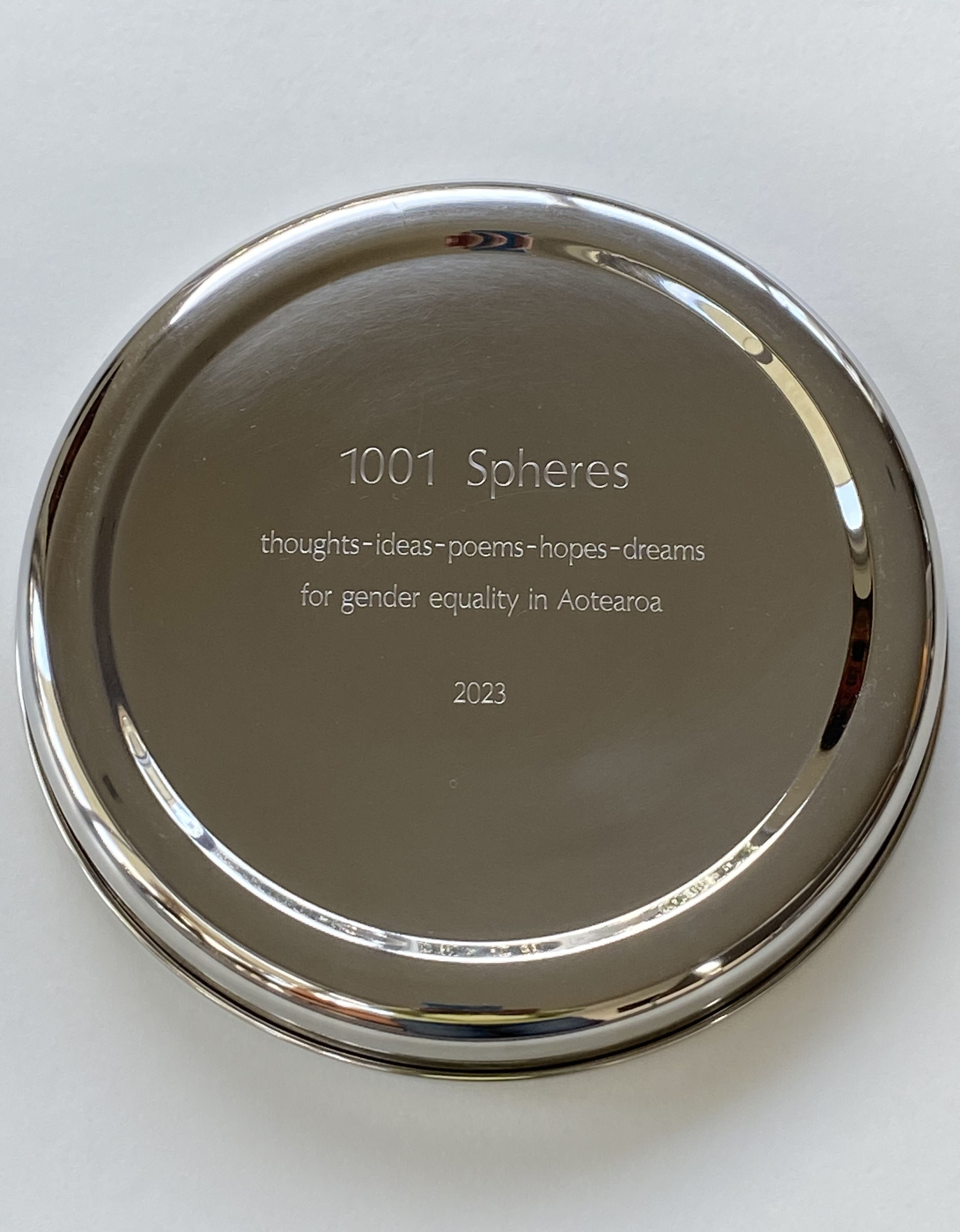 The location for the sculpture was specifically chosen because it offers a natural gathering space. Surrounding 1001 Spheres is a large grassed area encircled by mature trees, providing a peaceful and inspiring environment. Then, to initiate the participatory aspect of the project, individuals and organisations active in the gender equity space were invited to collaborate by contributing a statement, hope or vision for the future of gender equality.