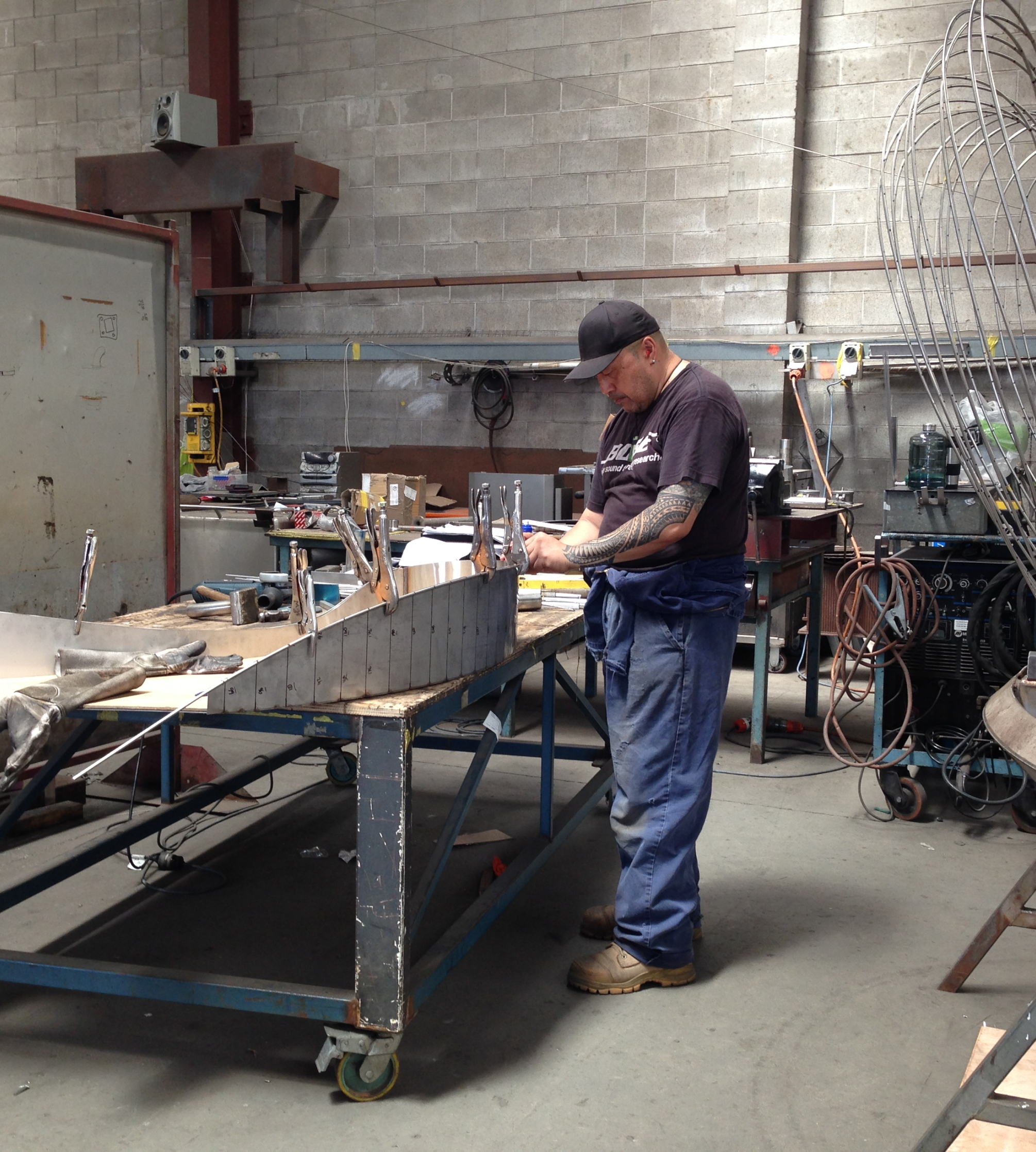 A particularly challenging aspect was the production of the double hemisphere created by combining hundreds of stainless-steel wire strands.  Each strand was hand-formed on a jig to produce identical profiles, then assembled with half the wire strands running clockwise, and half anticlockwise. In this way they formed 22,000 intersections with only 10% needing to be welded to create structural integrity.